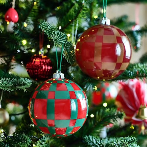 イケアの「VINTERFINT/ヴィンテルフィント ツリーオーナメント」は、直径約15cmの存在感たっぷりのサイズ。吊るすだけで視線が集まり、コンパクトな部屋でも“主役”が自然と生まれます。また、赤×緑のクラシックなチェック柄は、海外トレンドの「ビッグサイズデコレーション」とも重なり、今年らしさもひと目で伝わるアイテム。